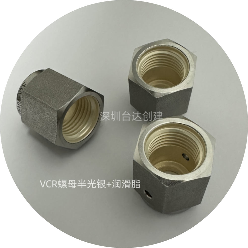 台达创建提供1/8--1"VCR接头,N06(S14)--N42L(S60)单卡套及英制1/16-2",公制3-32MM全系双卡套螺母内螺纹镀银后涂低扭力润滑脂服务。